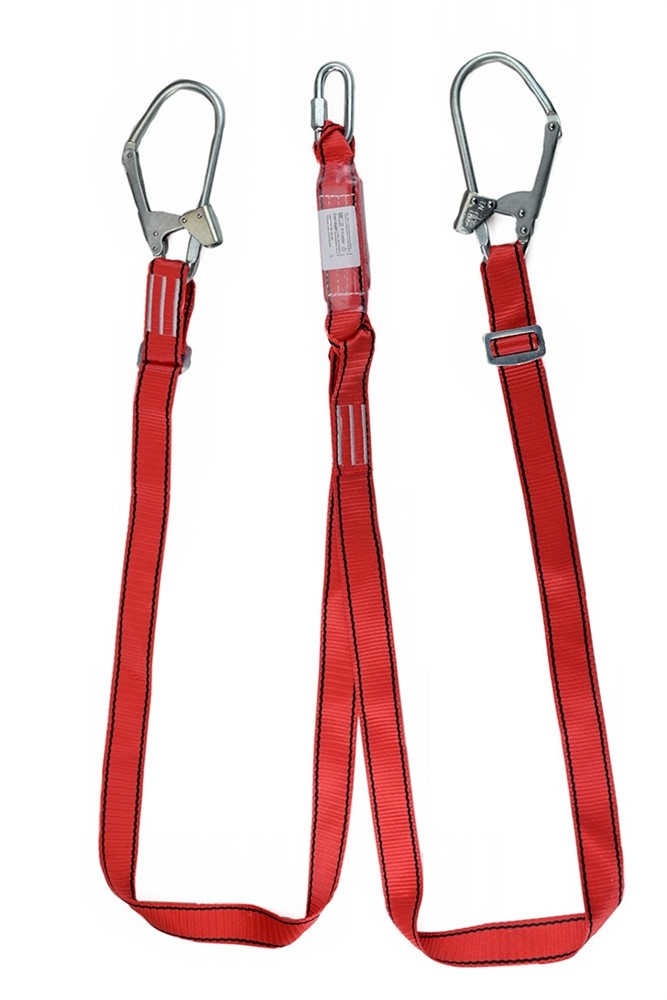Строп аАдрег К50+Кс - страховочный строп двойной(двухплечий) из регулируемой полиэфирной ленты с амортизатором, с двумя большими монтажными и соединительным карабином.